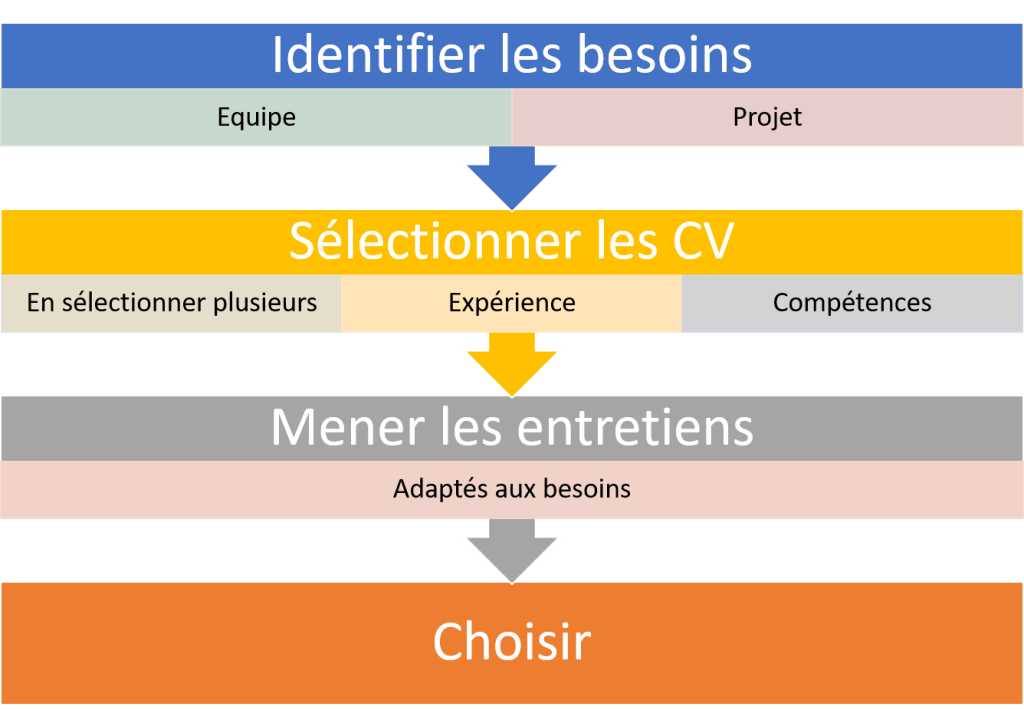 La sélection des CVs n’est pas l’étape la plus compliquée surtout si l’on a bien fait la fiche de poste. Il faut juste se rappeler qu’il sera très compliqué d’avoir quelqu’un dont le CV corresponde exactement à nos demandes et que même si c’est le cas le titulaire de ce CV ne sera peut-être pas le candidat « idéal » pour diverses raisons.