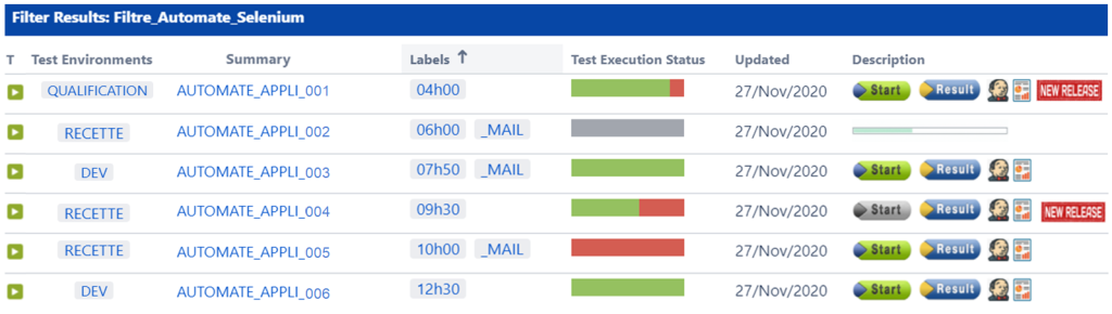 L’objectif de ce Dashboard JIRA est de s’appuyer sur les automates existants en rajoutant une surcouche simple pour centraliser tous les lancements ainsi que leurs résultats.